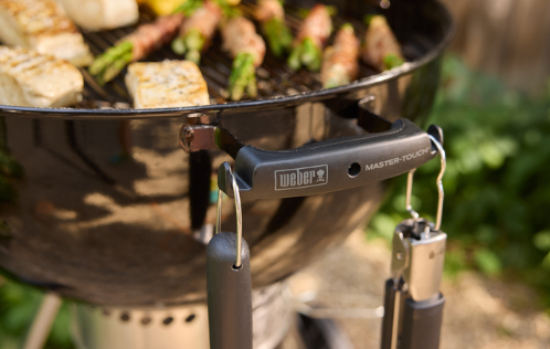 La barbacoa de carbón Master-Touch de 57 cm con acabado en negro y capacidad para 6-8 personas. Incorpora rejilla de acero inoxidable abisagrada compatible con Gourmet BBQ System, termómetro integrado y reguladores ajustables para un control preciso del calor. Su sistema de limpieza One-Touch, el soporte para tapa Tuck-Away y sus ruedas resistentes la convierten en un clásico duradero, práctico y perfecto para disfrutar del auténtico sabor a la brasa.