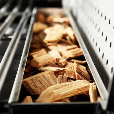 Gran ahumador de acero inoxidable, aporta un intenso y delicioso sabor ahumado a tus platos gracias al quemador de ahumado integrado y al ahumador de acero inoxidable, ideales para realzar cualquier preparación a la barbacoa.