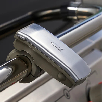 El quemador de infrarrojos para asador giratorio, ubicado en la parte posterior, distribuye el calor de forma uniforme directamente sobre el espetón, garantizando una cocción homogénea. Este exclusivo sistema incluye un motor plegable y un práctico espacio de almacenamiento para el espetón y los tenedores dentro del carro cerrado.