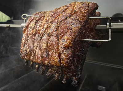 El asador giratorio incluido eleva aún más las posibilidades culinarias, permitiendo asar de forma homogénea un pollo entero, un costillar de ternera o una pata de cordero, sellando los jugos en el interior para lograr resultados jugosos y llenos de sabor. Además, el quemador lateral aporta una zona de cocción adicional ideal para salsas, guarniciones o salteados.