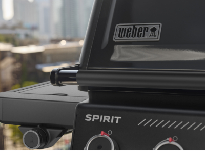 La Barbacoa Spirit EPX-435R destaca por su estético acabado completamente en negro, con detalles en rojo y elegantes componentes en acero inoxidable negro, aportando un estilo sofisticado y moderno que no pasa desapercibido en ningún espacio exterior.