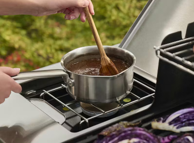 El quemador lateral ofrece el espacio perfecto para preparar guarniciones, salsas o platos a fuego lento mientras el resto de la comida se cocina en la parrilla principal.