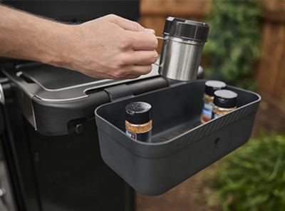 - Mesa lateral Weber Works, preparada para incorporar accesorios insertables opcionales.