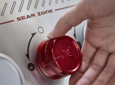Los dos quemadores Boost aportan un 40 % más de potencia en la Sear Zone más amplia de su categoría, concentrando el calor al máximo para conseguir marcas de parrilla intensas.