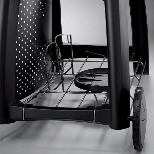 Coloca tu barbacoa Q a la altura ideal para cocinar e incorpora ruedas que facilitan su desplazamiento. Además, cuenta con prácticos ganchos para colgar los utensilios esenciales, permitiéndote acceder a ellos fácilmente y mantener el espacio de trabajo siempre organizado.